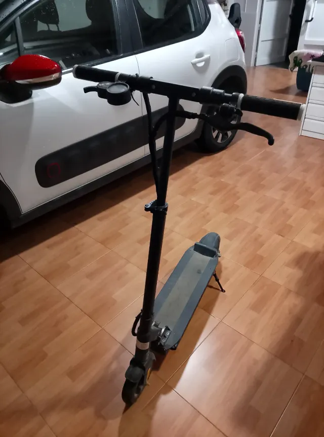 Patinete eléctrico en perfecto estado. - Color negro. - Manillar ajustable. - Rueda delantera y trasera solida antipinchazos - Pata de apoyo.