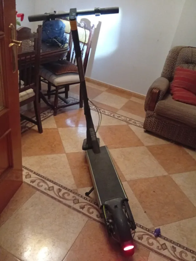 Patinete eléctrico en buen estado, listo para usar. - Diseño moderno y funcional. - Plataforma antideslizante. - Luz trasera roja.
