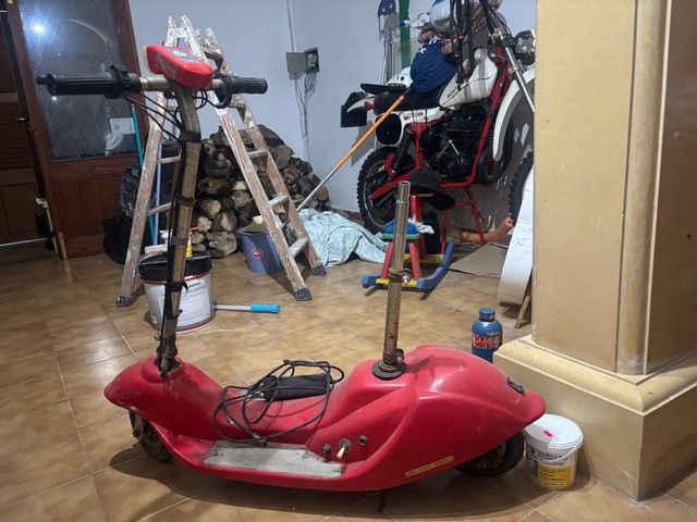 Patinete eléctrico antiguo de color rojo. Ideal para coleccionistas o para restaurar. - Diseño clásico. - Ruedas anchas.