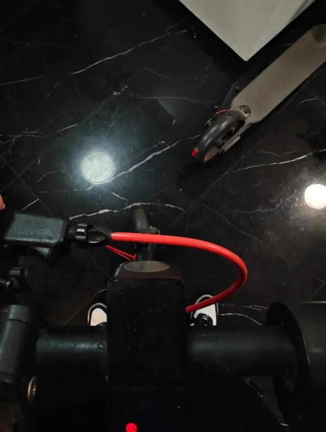Patinete eléctrico AOVOPRO en color negro. Tiene la rueda delantera doblada,tiene rueda masisa