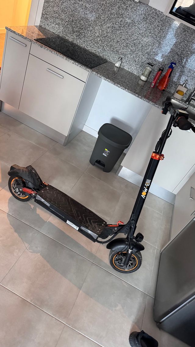 Detalles del productoPatinete eléctrico de la marca B-MOV en color negro con detalles naranjas.