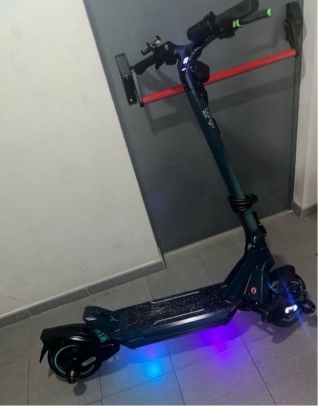 Detalles del productoPatinete eléctrico con un diseño moderno y luces LED integradas.