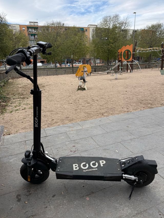 Patinete eléctrico de la marca BOOP by ECOXTREM. Diseñado para desplazamientos urbanos. - Color negro. - Plataforma ancha. - Manillar ajustable.