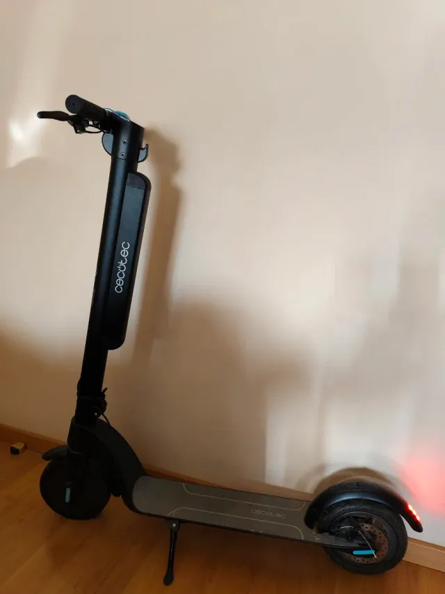 Patinete eléctrico de la marca Cecotec, color negro. - Diseño moderno y elegante. - Manillar ajustable. - Ruedas delanteras y traseras. - Luz trasera roja.