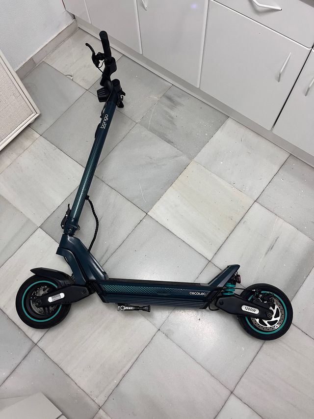 Detalles del productoPatinete eléctrico Cecotec Bongo Y65 con un potente motor de 1200W. Diseño moderno en color verde oscuro con detalles brillantes.