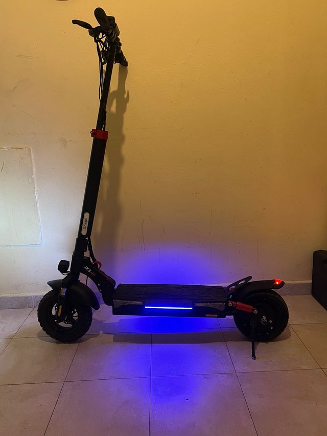 Detalles del productoPatinete eléctrico con un diseño moderno y luces LED integradas que le dan un toque distintivo.