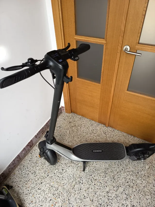 Detalles del productoPatinete eléctrico con diseño moderno y plataforma antideslizante.