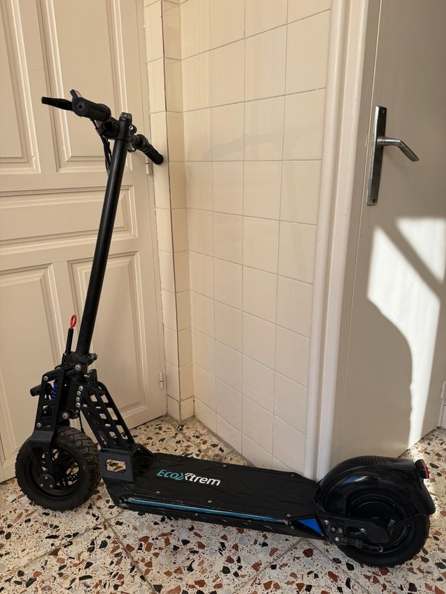 Detalles del productoPatinete eléctrico de la marca Ecoxtrem en color negro. Diseñado para ofrecer una experiencia de movilidad urbana.