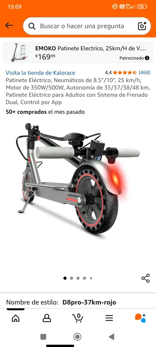 Patinete eléctrico EMOKO en color rojo, con un diseño moderno y deportivo.