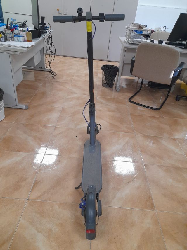 Patinete eléctrico en color gris, ideal para desplazamientos urbanos. - Diseño plegable. - Manillar ajustable. - Ruedas de goma.