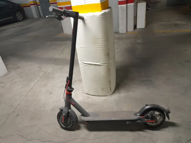 Detalles del productoPatinete eléctrico de color gris, ideal para desplazamientos urbanos.