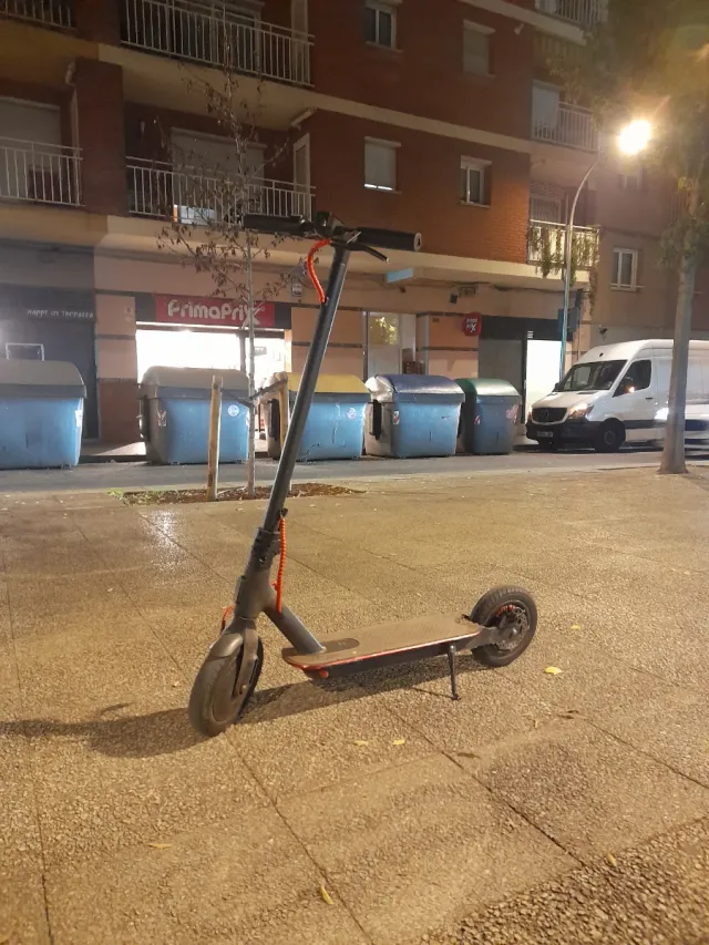 Detalles del productoPatinete eléctrico en color gris, ideal para desplazamientos urbanos.