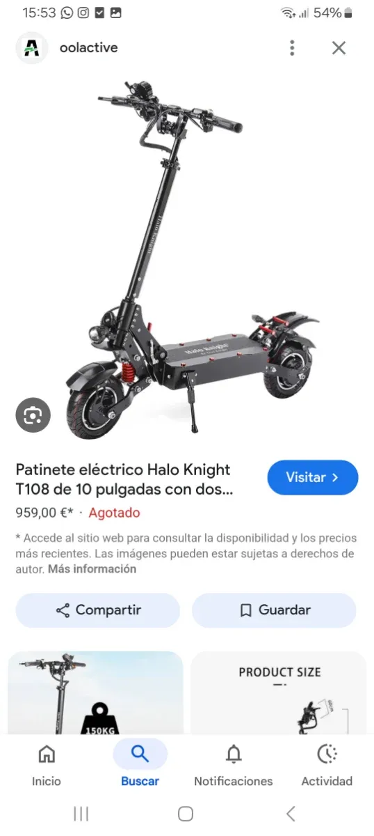 Detalles del productoPatinete eléctrico marca Halo Knight, modelo T108, con ruedas de 10 pulgadas.