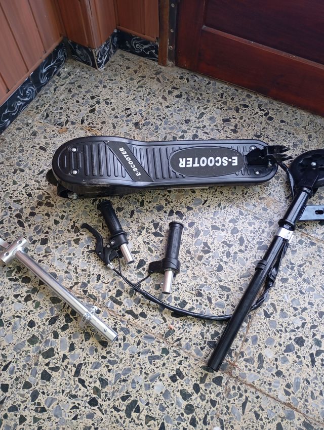 Detalles del productoPatinete eléctrico diseñado para niños, con la particularidad de ser desmontable para facilitar su transporte y almacenamiento.