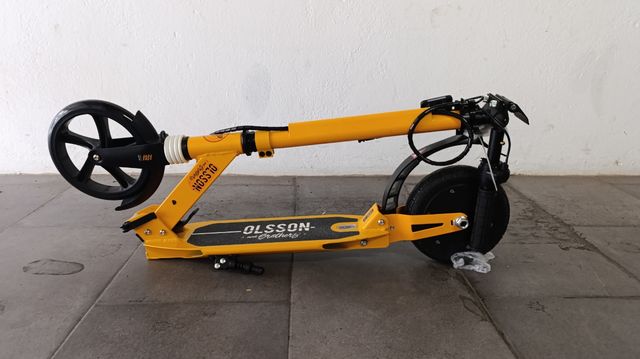 Detalles del productoPatinete eléctrico de color amarillo, marca Olsson. Nuevo en su embalaje, solo abierto para verlo, nunca usado.