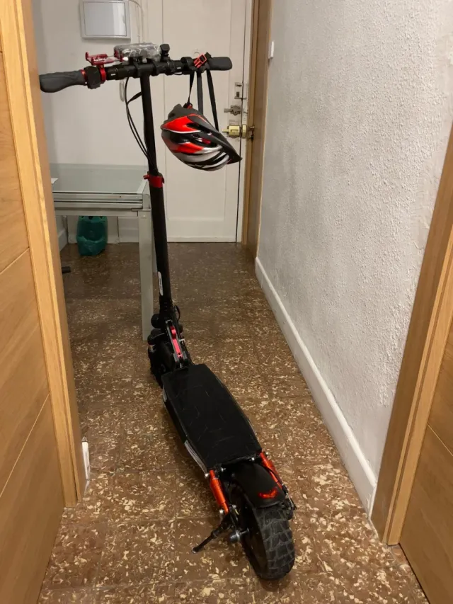 Patinete eléctrico Iscooter en color negro. Incluye casco de protección. - Diseño moderno y funcional. - Ruedas todoterreno. - Manillar ajustable.