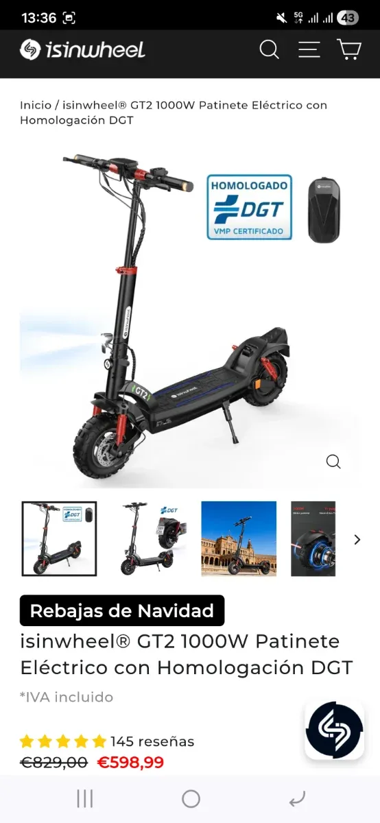 Detalles del productoPack completo! Patinete eléctrico Isinwheel GT2 con diseño robusto y moderno.