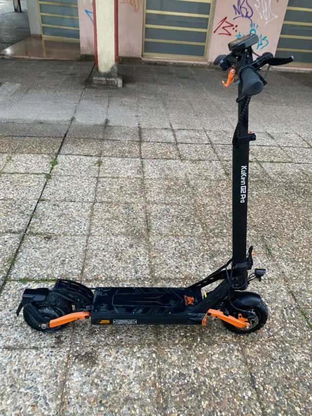 Detalles del productoPatinete eléctrico KuKirin G2 Pro en color negro y naranja. Diseño moderno y robusto.