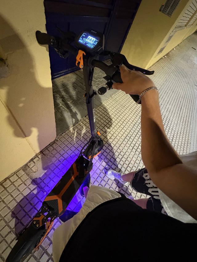 Detalles del productoPatinete eléctrico Kukirin G2 Max en color negro y naranja.