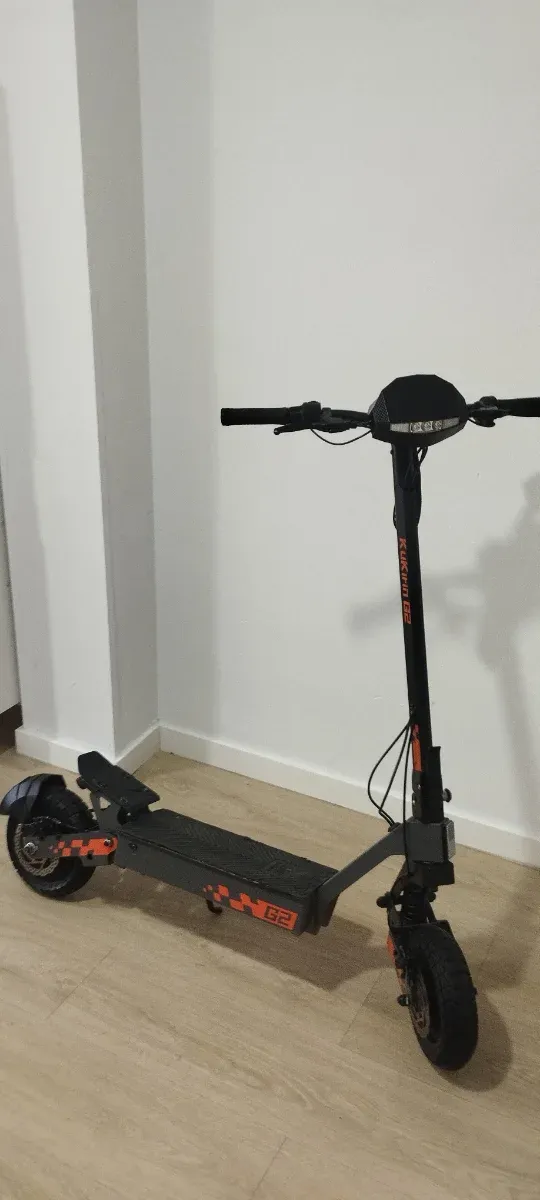 Detalles del productoPatinete eléctrico kukurin G2 en color gris y detalles naranjas.