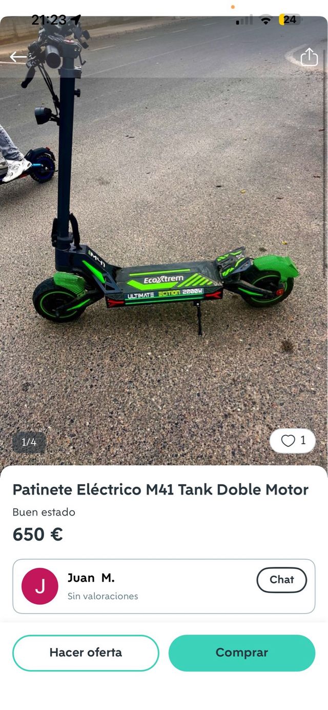 Detalles del productoPatinete eléctrico M41 Tank con doble motor. Se encuentra en buen estado.
