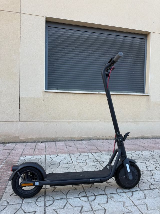 Detalles del productoPatinete eléctrico de color negro, ideal para desplazamientos urbanos.