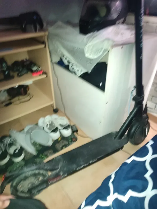 Patinete eléctrico en color negro. - Plataforma ancha para mayor comodidad. - Rueda trasera con motor visible. - Manillar con detalles.Y rueda trasera maciza