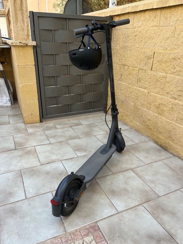 Detalles del productoPatinete eléctrico de color negro, ideal para desplazamientos urbanos. Incluye casco. Se ha utilizado en trayectos cortos y muy poco y se vende por no usarlo, en perfecto estado, incluye también cargarlo y casco