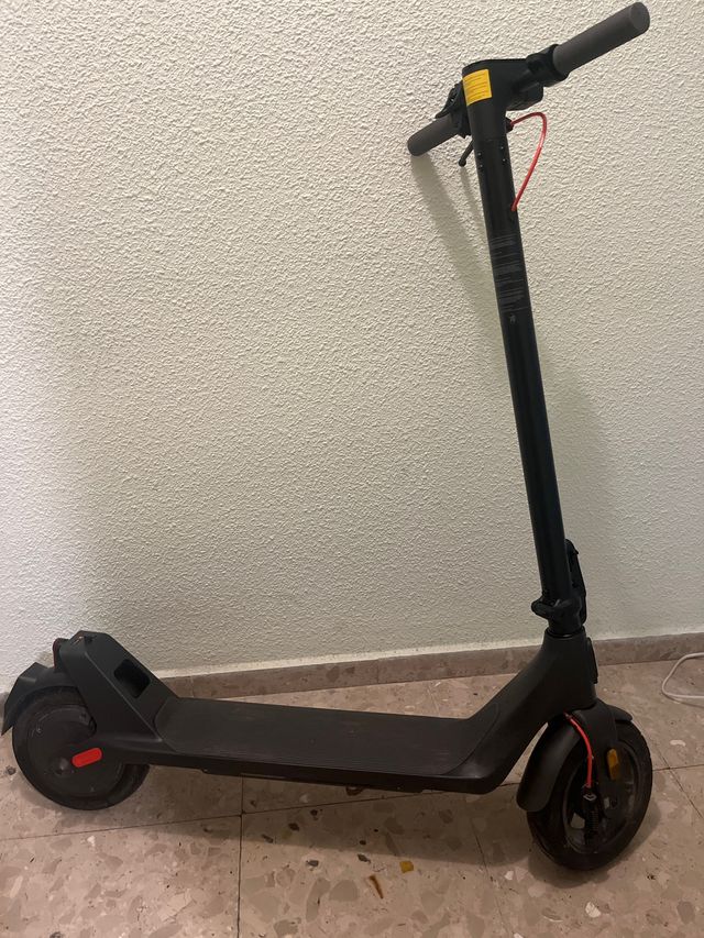 Detalles del productoPatinete eléctrico de color negro, ideal para desplazamientos urbanos.