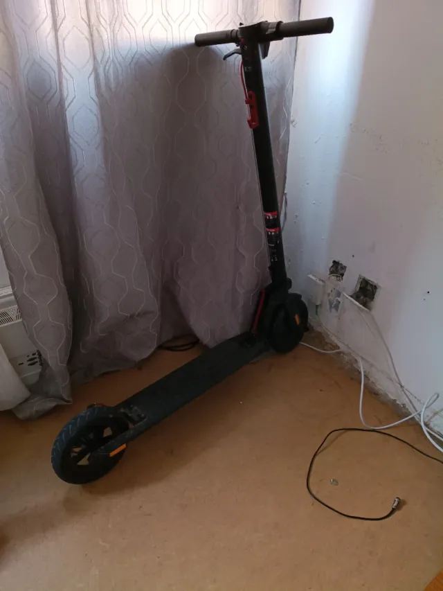 Detalles del productoPatinete eléctrico de color negro, ideal para desplazamientos urbanos.