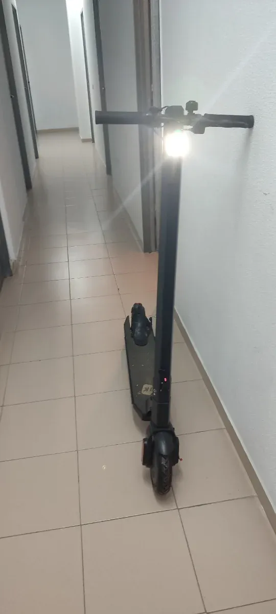 Detalles del productoPatinete eléctrico en color negro, ideal para desplazamientos urbanos.