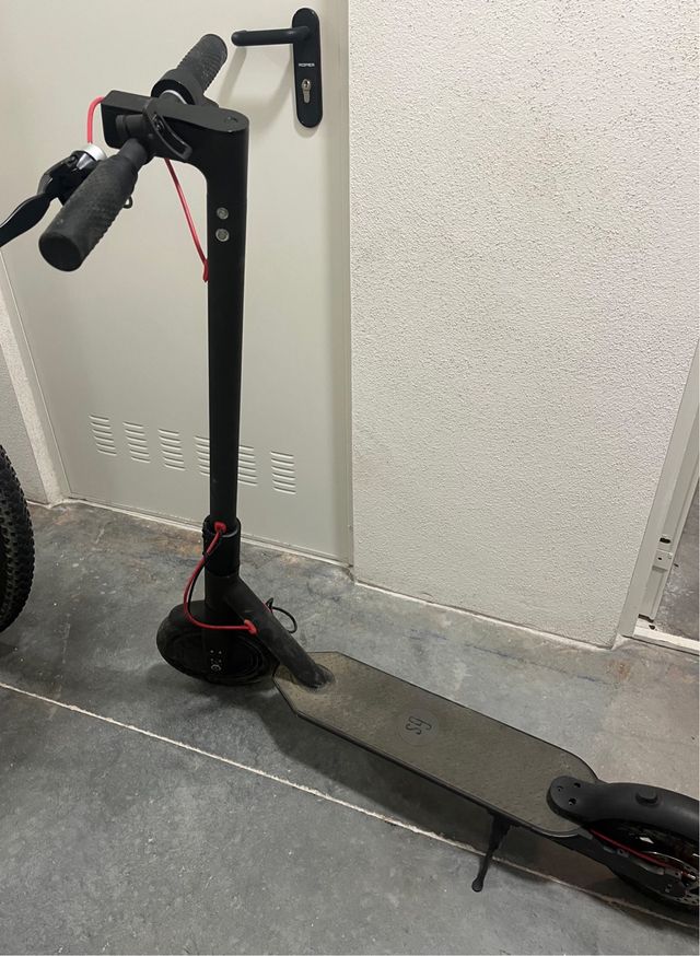 Detalles del productoPatinete eléctrico de color negro, ideal para desplazamientos urbanos.