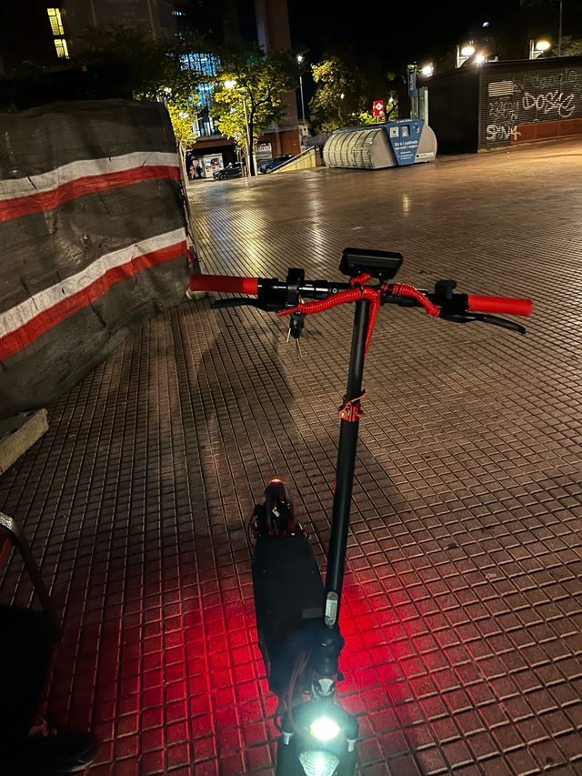 Patinete eléctrico con un diseño moderno y llamativo. - Manillar con puños rojos. - Luces LED delanteras y traseras rojas. al privado mas información