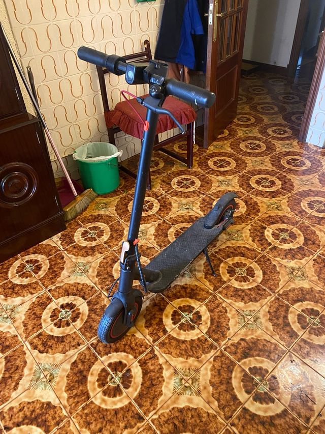 Detalles del productoPatinete eléctrico de color negro, ideal para desplazamientos urbanos.
