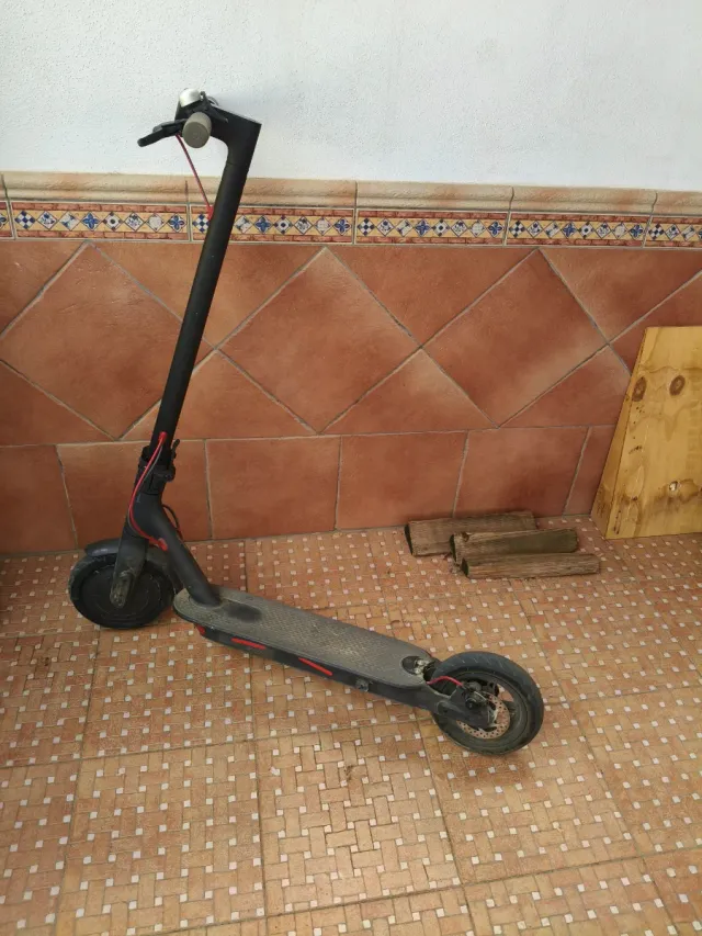 Detalles del productoPatinete eléctrico de color negro, ideal para desplazamientos urbanos.