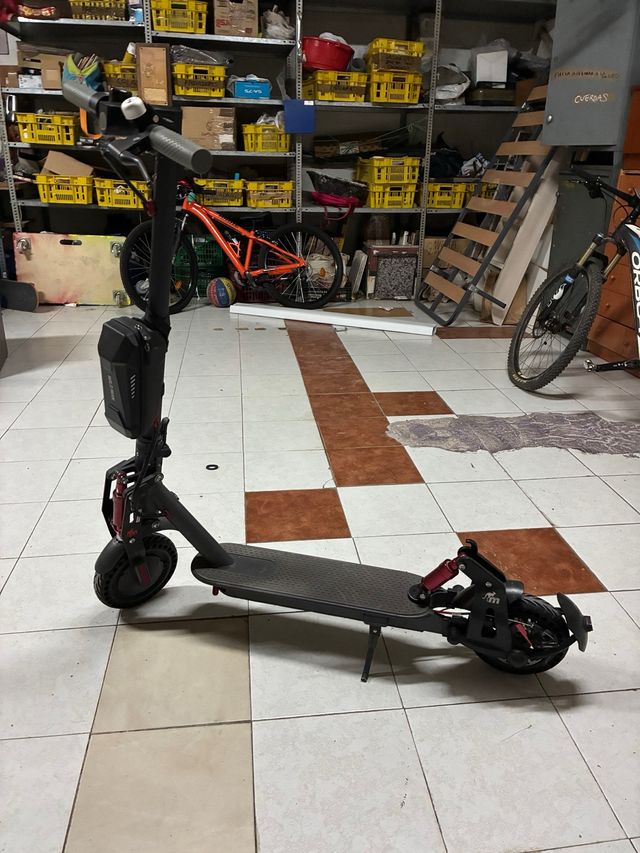 Patinete eléctrico de color negro, ideal para desplazamientos urbanos. - Diseño moderno y funcional. - Ruedas de goma. - Manillar ajustable.