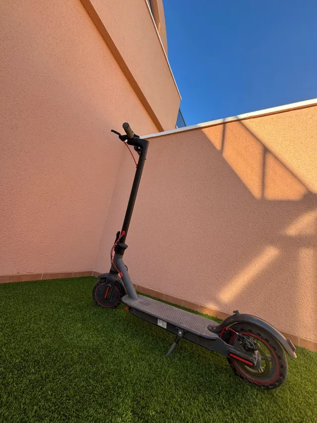Patinete eléctrico de color negro, ideal para desplazamientos urbanos. - Diseño moderno y funcional. - Ruedas mazicas. - Plataforma antideslizante. - Como nuevo