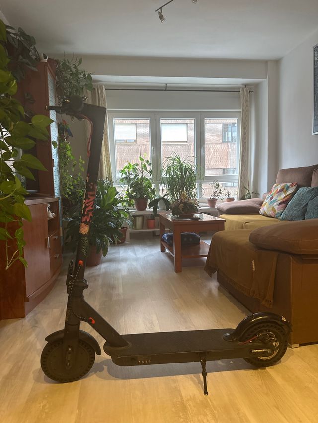 Detalles del productoPatinete eléctrico en color negro, ideal para desplazamientos urbanos.