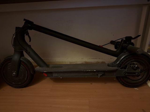 Detalles del productoPatinete eléctrico de color negro, ideal para desplazamientos urbanos.