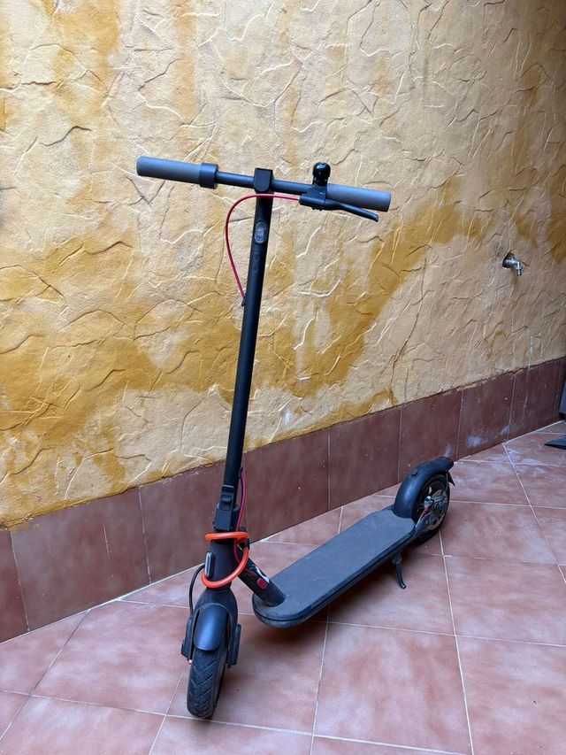 Detalles del productoPatinete eléctrico en color negro, ideal para desplazamientos urbanos.
