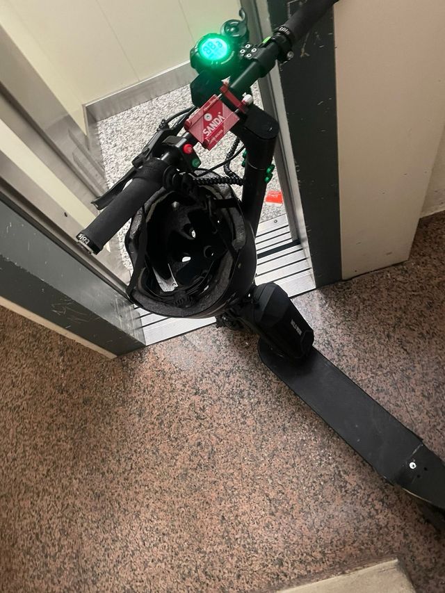 Detalles del productoPatinete eléctrico de color negro, ideal para desplazamientos urbanos.