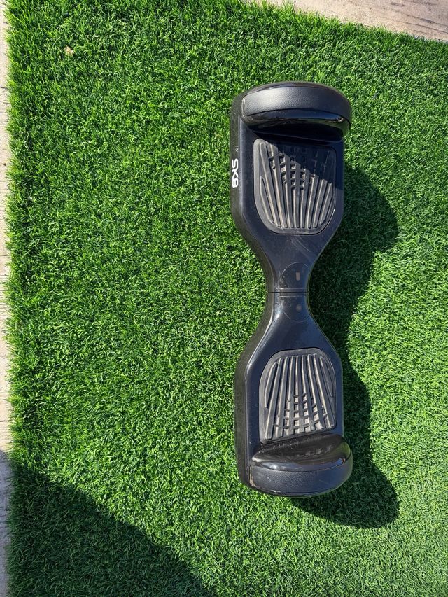 Patinete eléctrico de color negro con la marca SK8 visible. - Diseño moderno y elegante. - Plataformas antideslizantes para mayor seguridad.