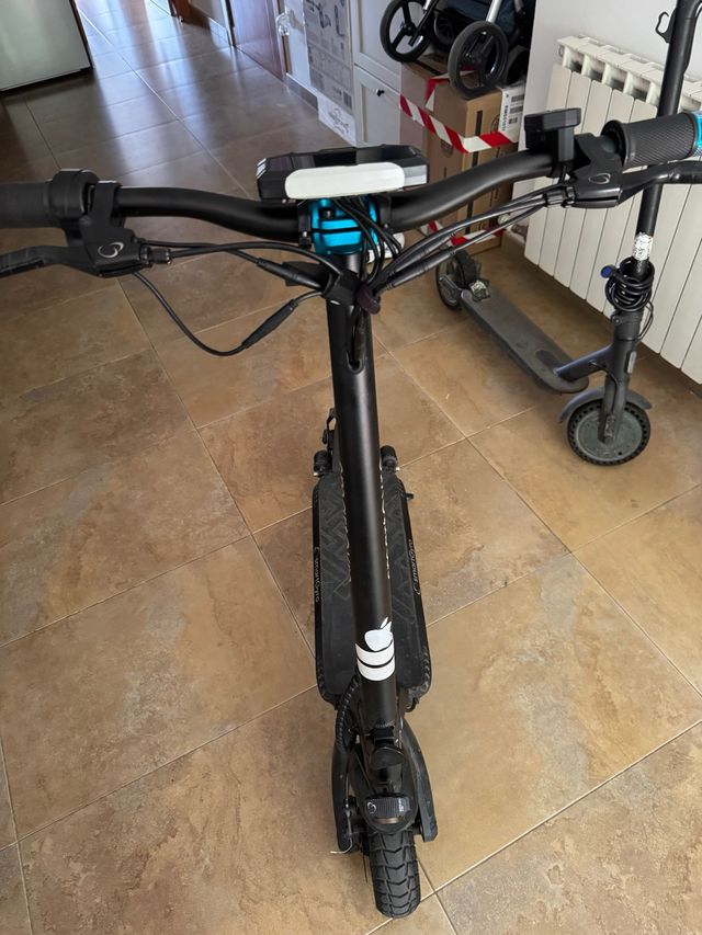 Detalles del productoPatinete eléctrico en color negro, ideal para desplazamientos urbanos.