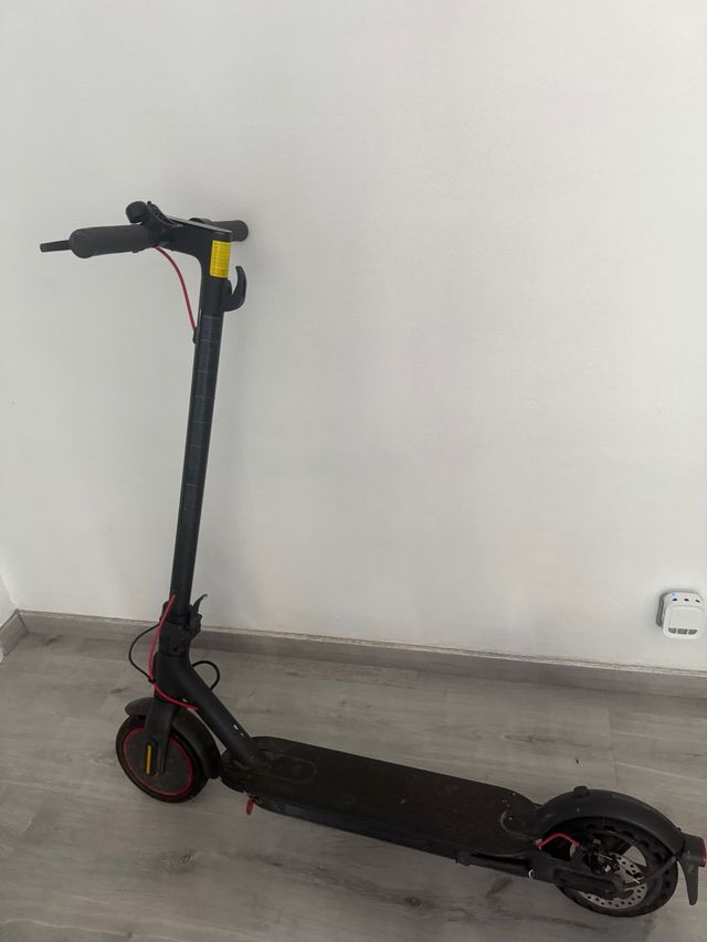 Detalles del productoPatinete eléctrico de color negro, ideal para desplazamientos urbanos.