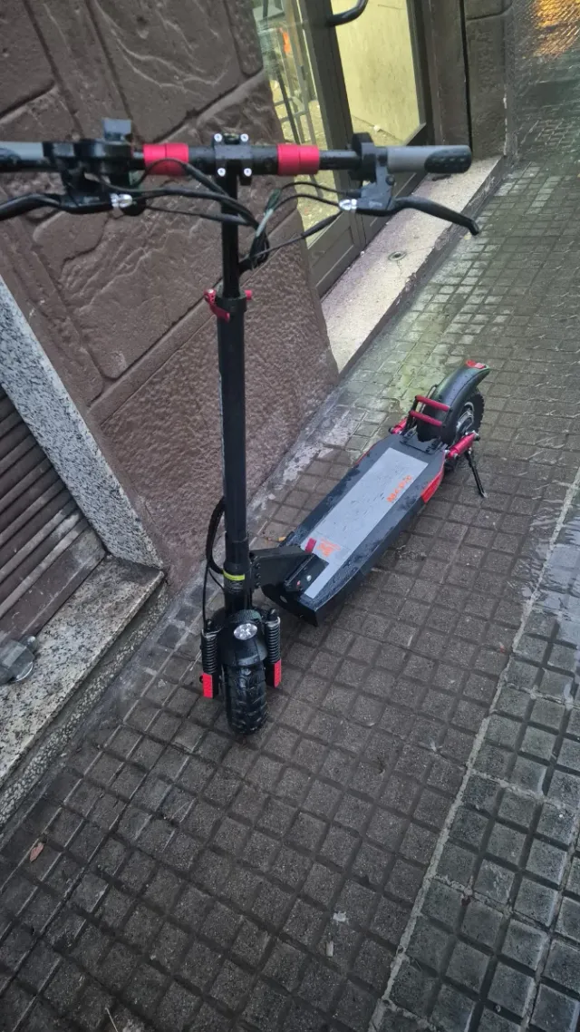 Detalles del productoPatinete eléctrico con un diseño moderno en color negro y detalles en rojo. Ideal para desplazamientos urbanos.