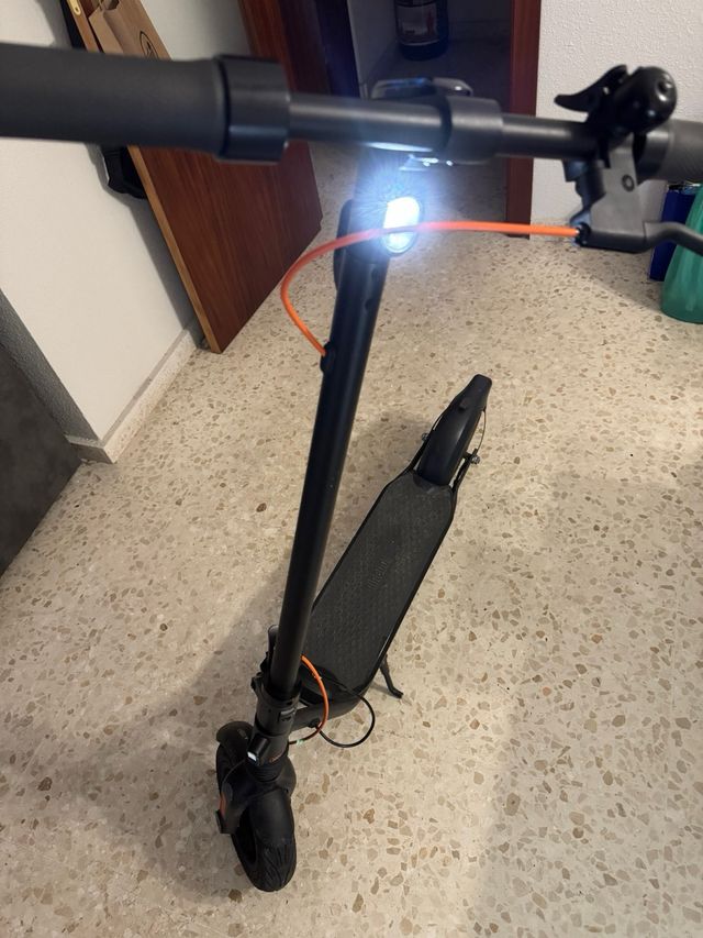 Detalles del productocon su cargador tiene intermitente pito electrico sonido. mucha autonomia. luces. en perfecto estado tiene una fuerza increible con 3 velocidades eco. 20 y 25 kmh. freno disco. es ancho. alto. rueda grandes amortiguador una de las mejores marcas de media markt como segway. su precio real son 700 e
