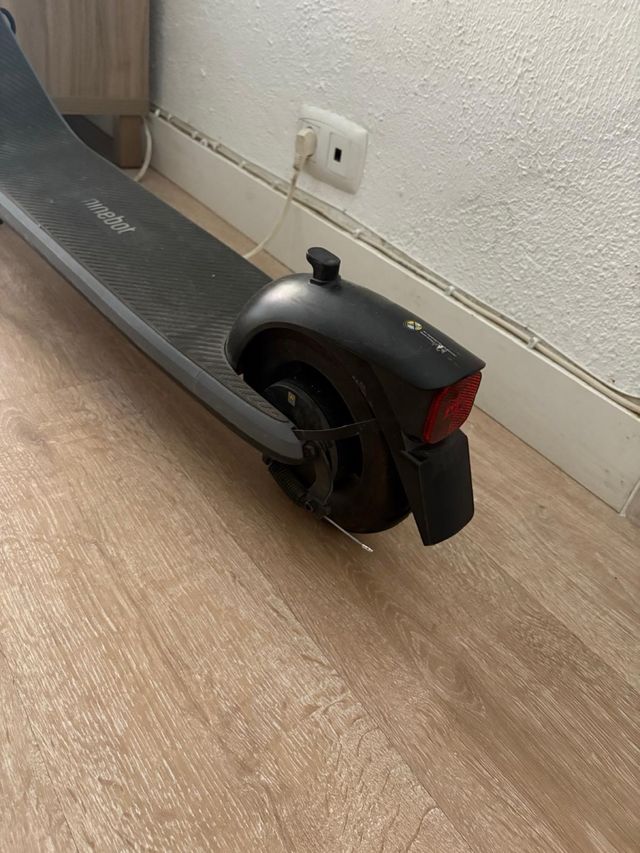 Patinete eléctrico Ninebot con diseño moderno y funcional. - Plataforma antideslizante. - Rueda trasera con guardabarros. - Luz trasera roja.