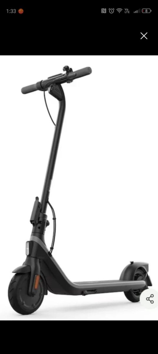 Patinete eléctrico Ninebot E2 en color negro con cargador original - Diseño moderno y elegante. - Ruedas de 8 pulgadas. - Freno electrónico y de pie.