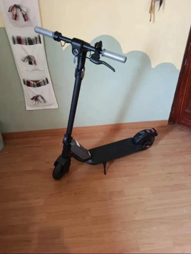 Prácticamente nuevo. Conserva los protectores de papel de los puños como se puede ver. Está en un estado impecable, con todas las identificaciones y pegatinas de fabrica intactas. Ruedas como nuevas (segun la app de la marca se le han hecho 34 km). Se adjunta manual de instrucciones y cargador original.