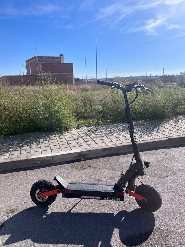 Detalles del productoPatinete eléctrico con un diseño robusto y ruedas todoterreno.